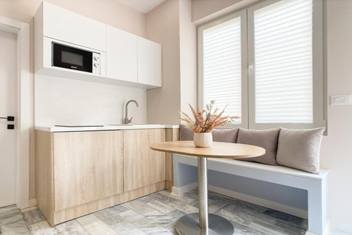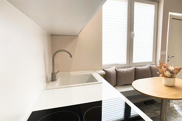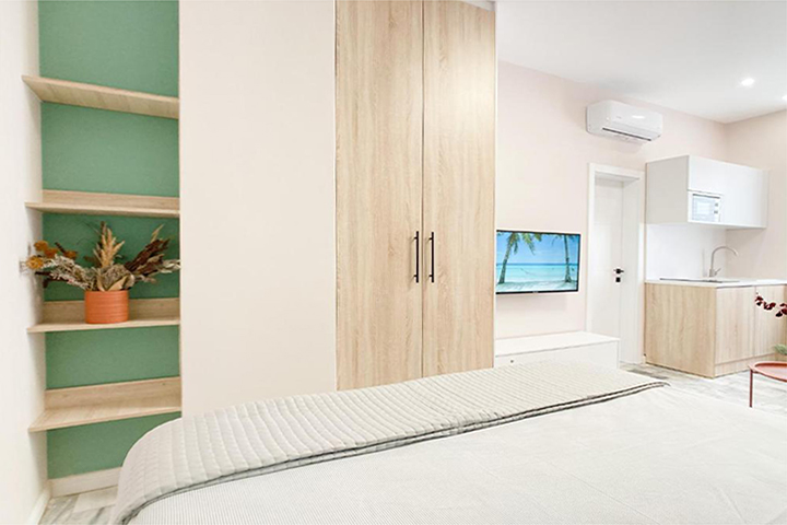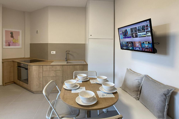The apartments feature 1 or 2 bedrooms, a flat-screen Smart TV, a kitchen equipped with a fridge, oven and microwave*, a washing machine and 1 bathroom with shower.