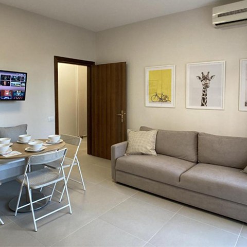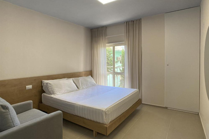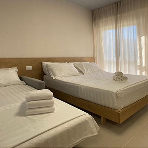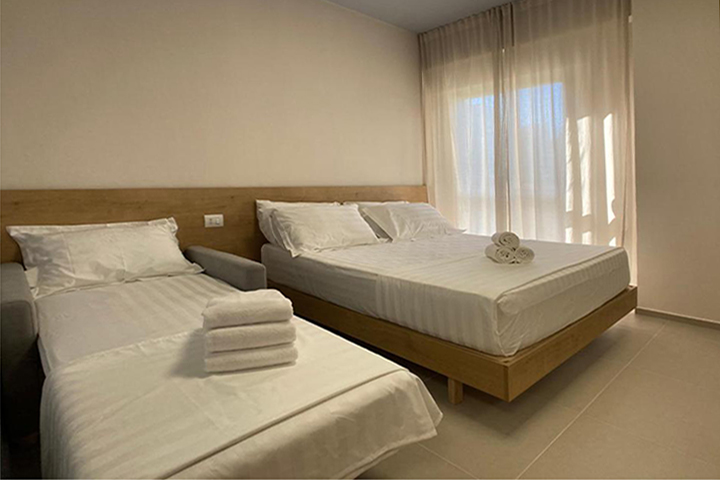When’s the last time you had a vacation? You deserve a chance to relax, decompress, and feel the stress melt from your shoulders. Situated on the second floor, this apartment is very bright and perfect for couples or families looking for a solution just a few steps away from the sea. It can accommodate up to 7 people. There is one bedroom, a bathroom and a shower. The bed chamber has a double bed and a single bed. The kitchen is fully equipped with a dinning table and the living room has two sofa beds. You can also enjoy your meals “al fresco” in two balconies, equipped with table and chairs. The apartment is very close to the sea, about 5 minutes on foot.